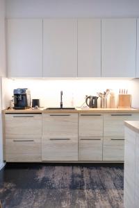 Жильё включает две отдельные спальни и гостиную с диваном и телевизором с плоским экраном со спутниковыми каналами. Полностью оборудованная кухня оснащена духовкой, посудомоечной машиной, плитой, холодильником, тостером, кофемашиной, электрическим чайником, кухонной утварью и обеденным столом, также имеется сушилка для одежды и стиральная машина. Дополнительные удобства включают звукоизоляцию стен для комфортного отдыха, отопление, гладильные принадлежности (утюг и гладильную доску), рабочий стол, шкаф или гардероб, детскую кроватку по запросу, полотенца, постельное бельё, зону отдыха, сушилку для одежды, кондиционер и розетки у кровати.