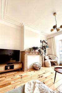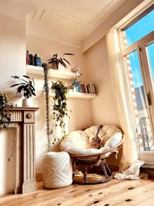 Das Apartment Bright and cozy apartment in Brussels mit Balkon und Stadtblick umfasst 1 Schlafzimmer, ein Wohnzimmer, Flachbild-TV, eine Küche mit Kühlschrank und Spülmaschine sowie 1 Bad mit Dusche.