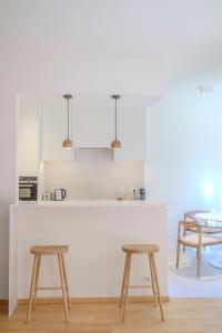 Полностью оборудованная кухня включает духовку, плиту, холодильник, посудомоечную машину, кофеварку, тостер, микроволновую печь, электрический чайник и кухонную утварь. Также имеется сушилка для одежды и обеденный стол — идеальное место для приёма пищи как внутри квартиры, так и на балконе с уличной мебелью для расслабленного обеда с видом на сад. Для развлечений доступно спутниковое телевидение на плоском экране с кабельным подключением. Безопасность обеспечивается установкой дымовых датчиков.