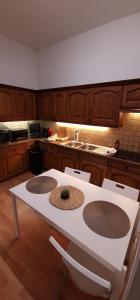 В размещении предусмотрено три спальных места в двух спальнях, гостиная зона и шкаф для одежды. Полностью оборудованная кухня включает плиту с духовкой, микроволновую печь, тостер а также кофемашину и электрический чайник для приготовления чая и кофе. Обеденный стол дополняет мини-кухню, дополнительные удобства — утюг с гладильной доской сушилка для одежды стиральная машина и сейф.