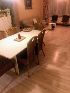 В апартаментах есть одна гостиная комната, две отдельные спальни с тремя кроватями и одна ванная комната с ванной и туалетом для приватного пользования. Полностью оборудованная кухня включает холодильник, посудомоечную машину, микроволновую печь, электрический чайник, кофеварку, кухонную утварь и обеденный стол для всех кулинарных потребностей. В номере предусмотрены отопление, шкаф для одежды, зона отдыха с диваном, сушилка для белья и стиральная машина.